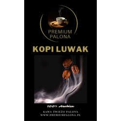 Kopi Luwak to ekskluzywna kawa ziarnista, 100 % arabika "wytwarzana" dzięki pomocy luwaków czyli sumatrzańskich zwierząt. Najrzadsza, najdroższa i najlepsza kawa na świecie o niespotykanej cielistości i smaku. Zbierana ręcznie na Sumatrze w Indonezji. Kawa Kopi Luwak jest w 100% oryginalną kawa pochodzącą z dzikich zbiorów (zwierzęta nie są hodowane w klatkach). Autentyczność kawy Kopi Luwak potwierdzona jest certyfikatem, który jest dołączony do każdego zakupionego opakowania tej niezwykłej kawy.
